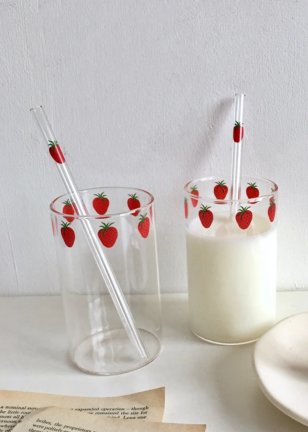 Quench your thirst with style! 🍓🥤 Love the creative 300ml transparent water cup with a cute strawberry design. Comes with a straw, perfect for students and milk lovers. Made of heat-resistant glass. #RefreshingSips