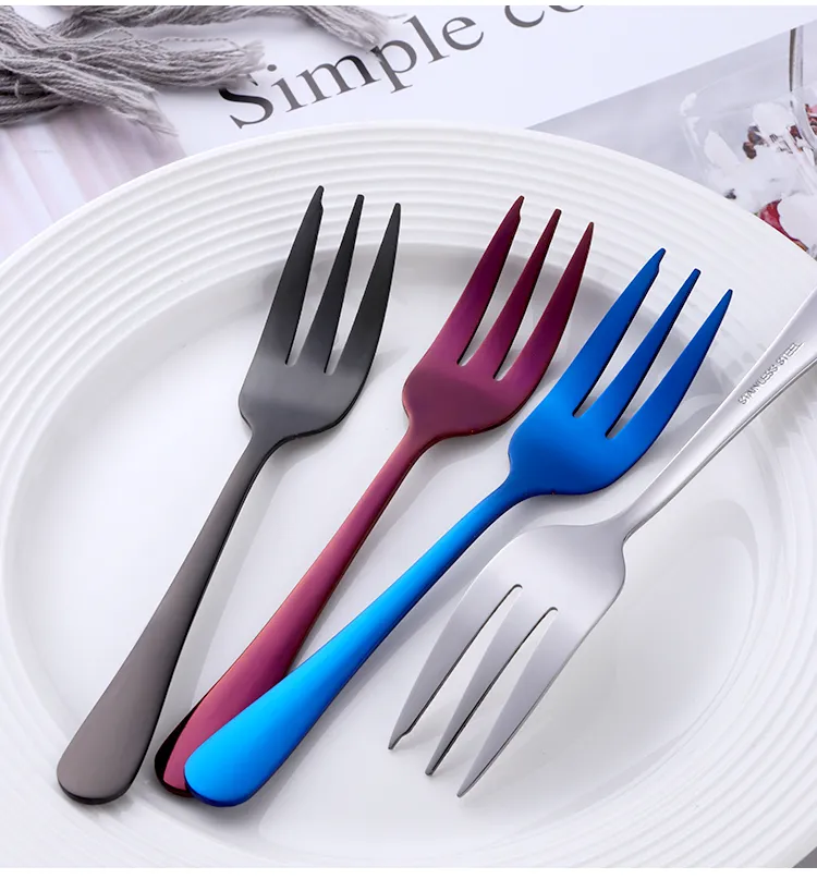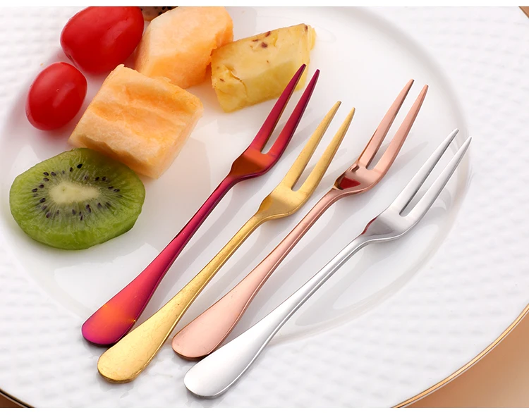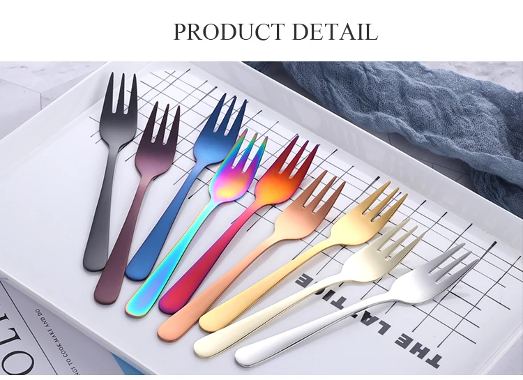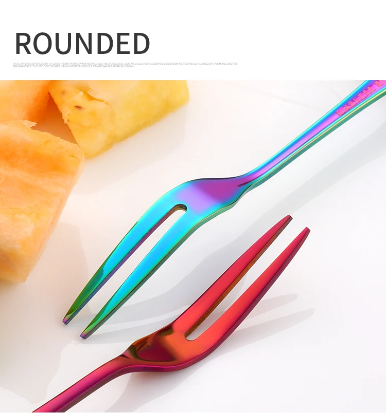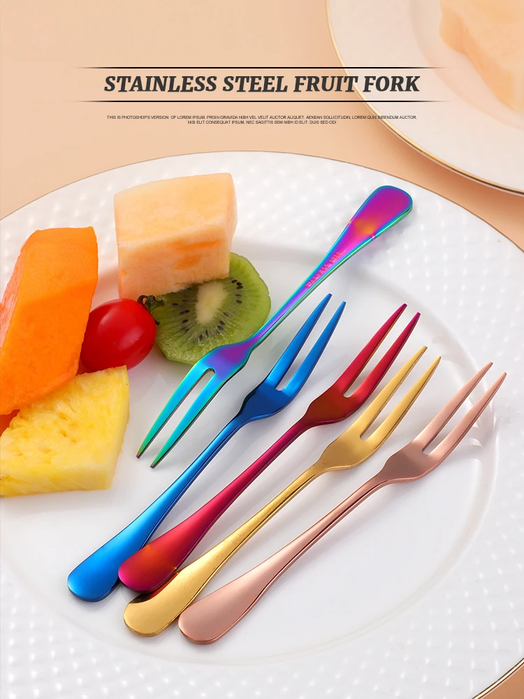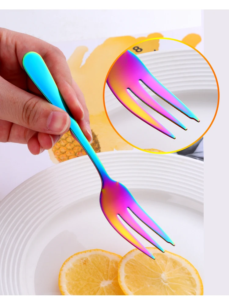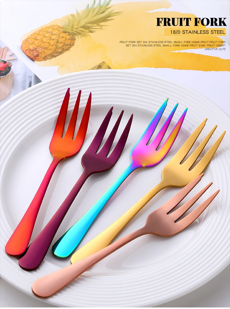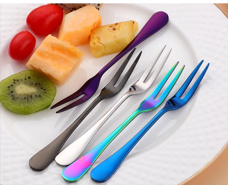 8PC Tea Fork Stainless Steel Small Fork For Dessert Rainbow Snack Fruit Fork Three-Tine Mini Fork Cake Colorful Home Dinnerware