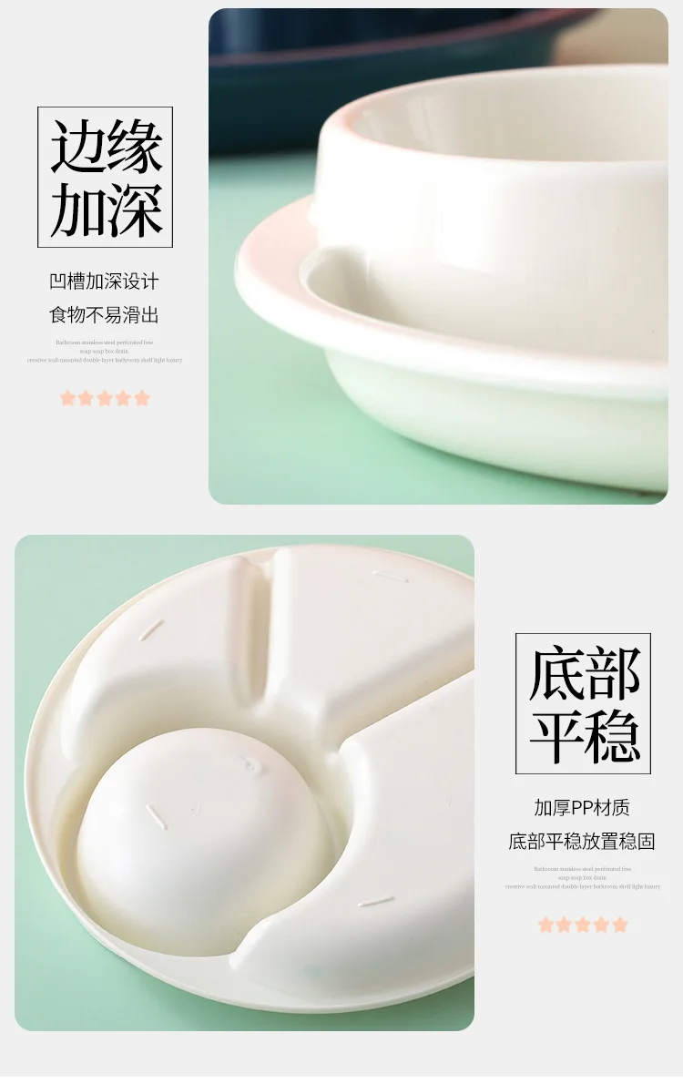 Solid color children’s anti-fall dinner plate divided grid plate for one person breakfast plate separator plate children’s tableware