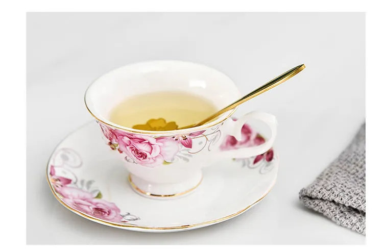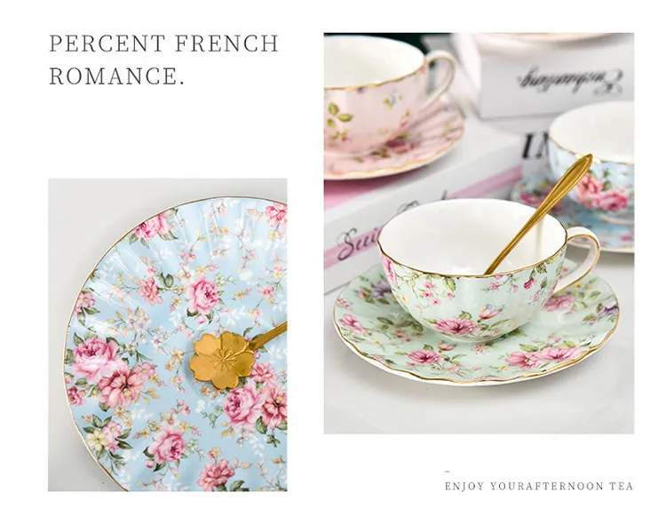Ceramic Coffee Cup Ldyllic Flowers Tea Set Suit British Style High-Grade Bone China Golden edge Tea Cup And Saucer With A Spoon