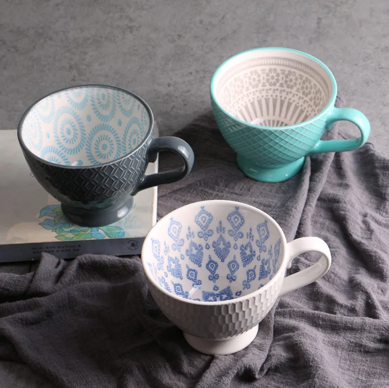 Sip your coffee in style with this exquisite hand-painted ceramic coffee cup.