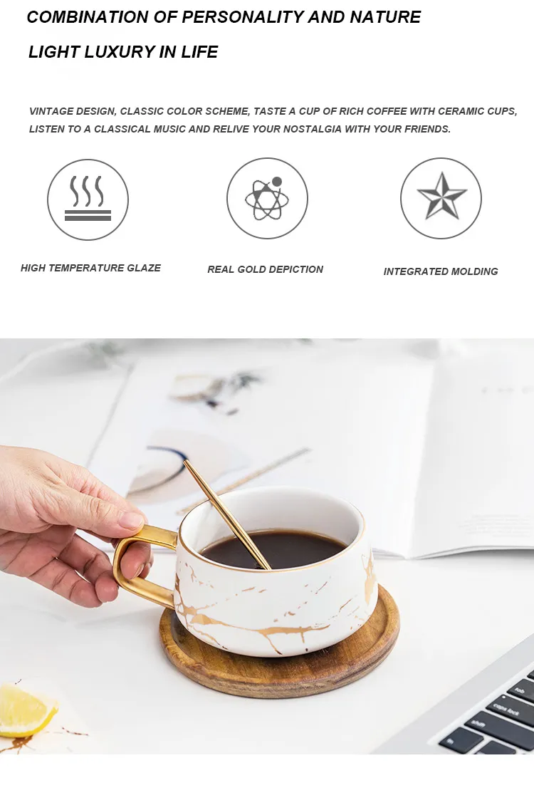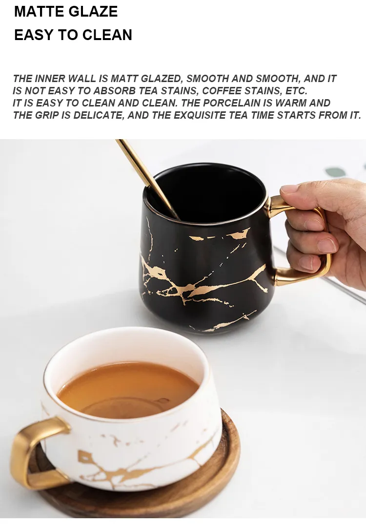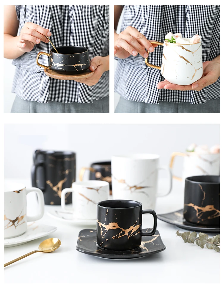 Condensed Coffee Mugs Luxury Nordic Marble Ceramic Coffee cups Cafe Tea breakfast Milk Cups Saucer Suit with Dish Spoon Set Ins