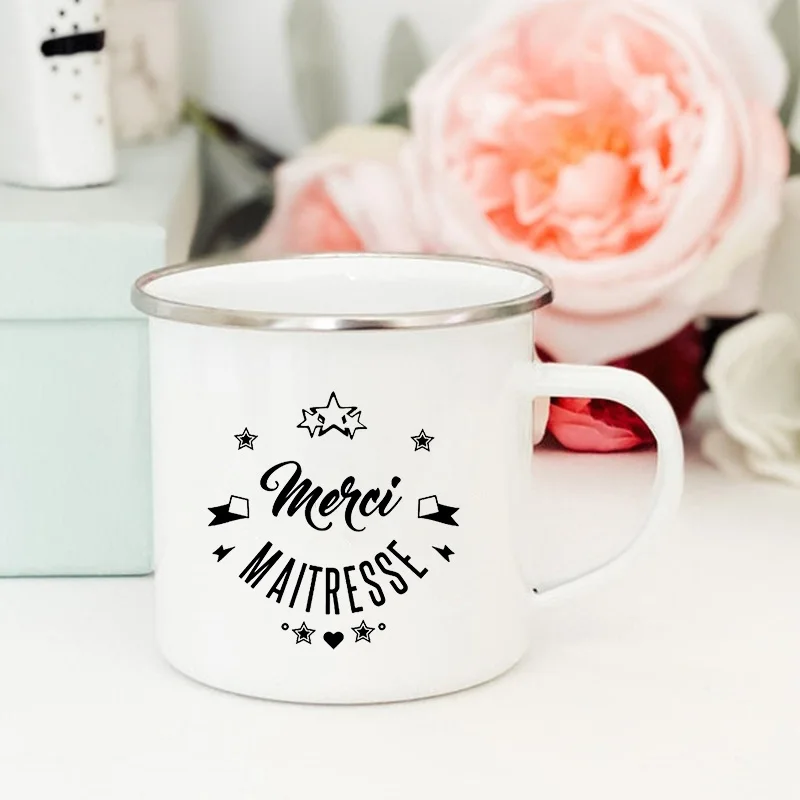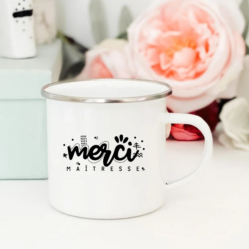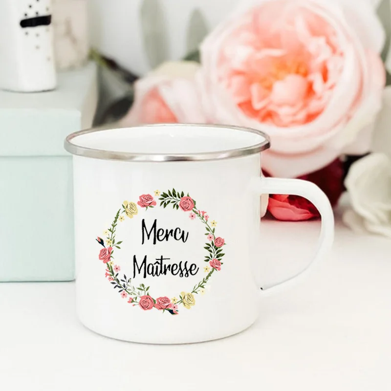 Creative Coffee Tea Cups Drinks Water Milk CupFrench Flower Printed Mugs Enamel Mug School Home Handle Drinkware Teacher Gifts
