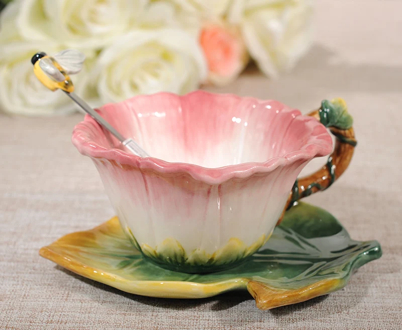 This European Luxury Flower Ceramic Afternoon Tea Coffee Cup and Saucer Set offers a unique, sophisticated look to your coffee and tea service.