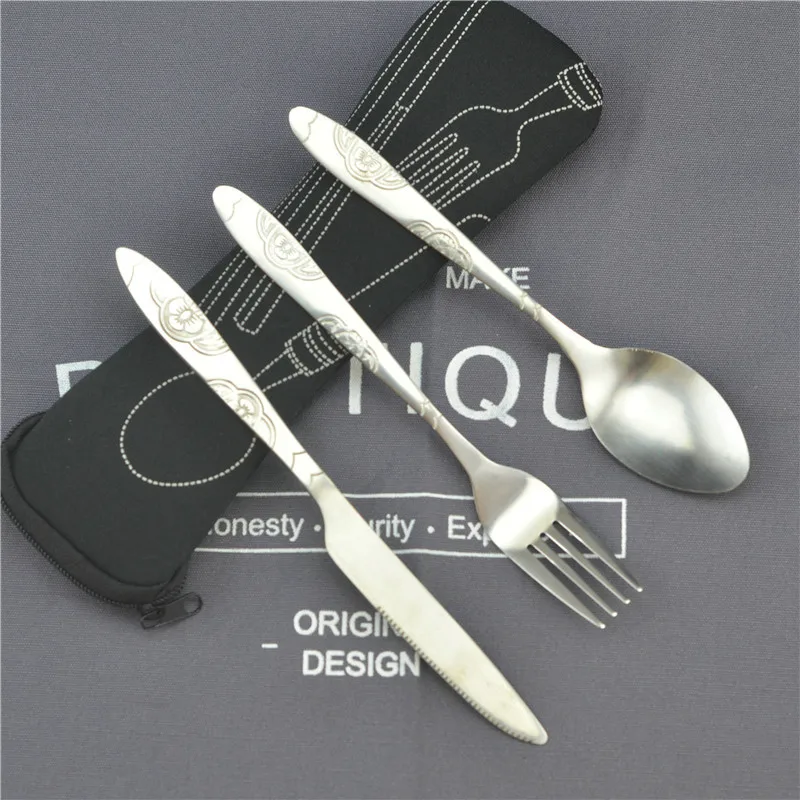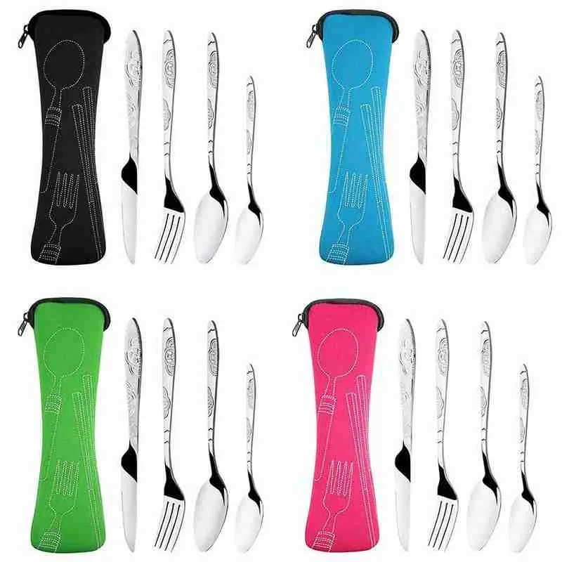 Family Travel Camping Cutlery 4Pcs Steel Knifes Fork Spoon Set Eyeful Four-piece Dinnerware Set with Case