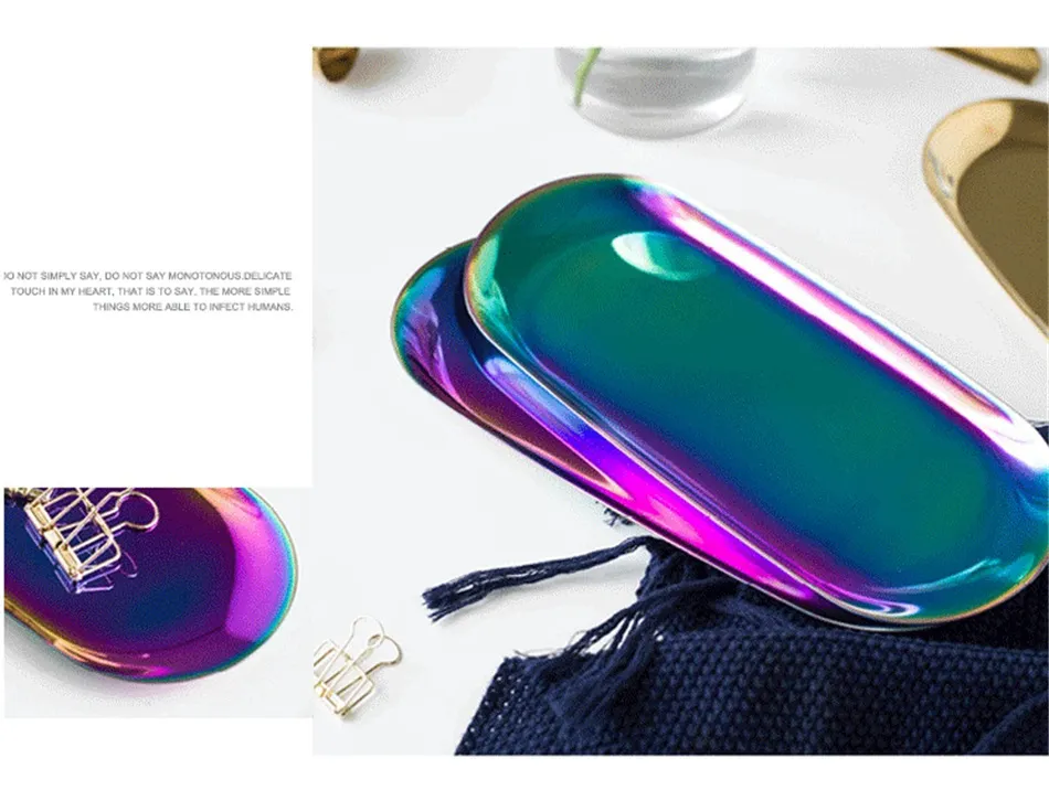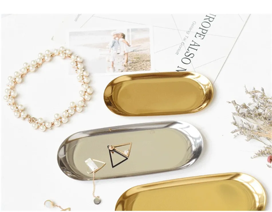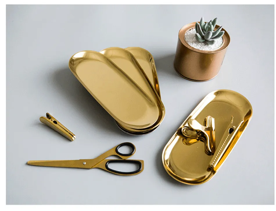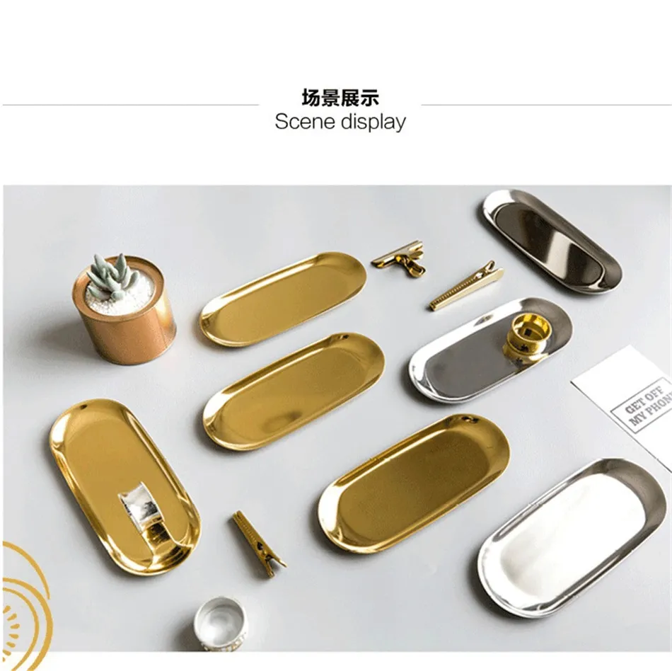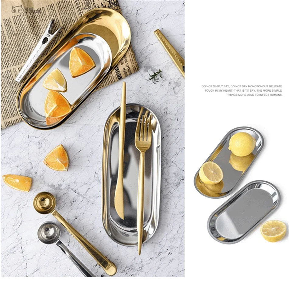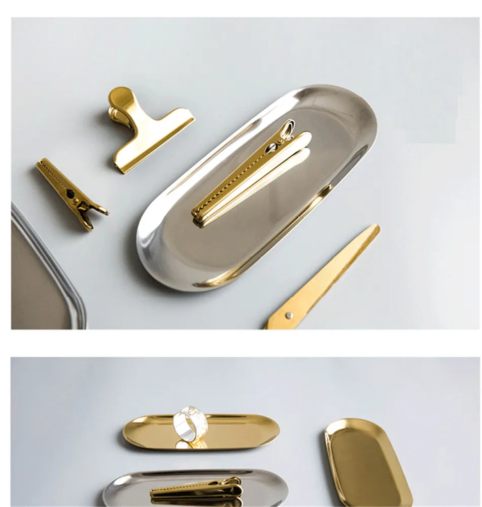 Stainless Steel Gold Storage Tray Fruit Sancks Jewelry Display Plate Kitchen Organizer Tools Metal Seal Clip
