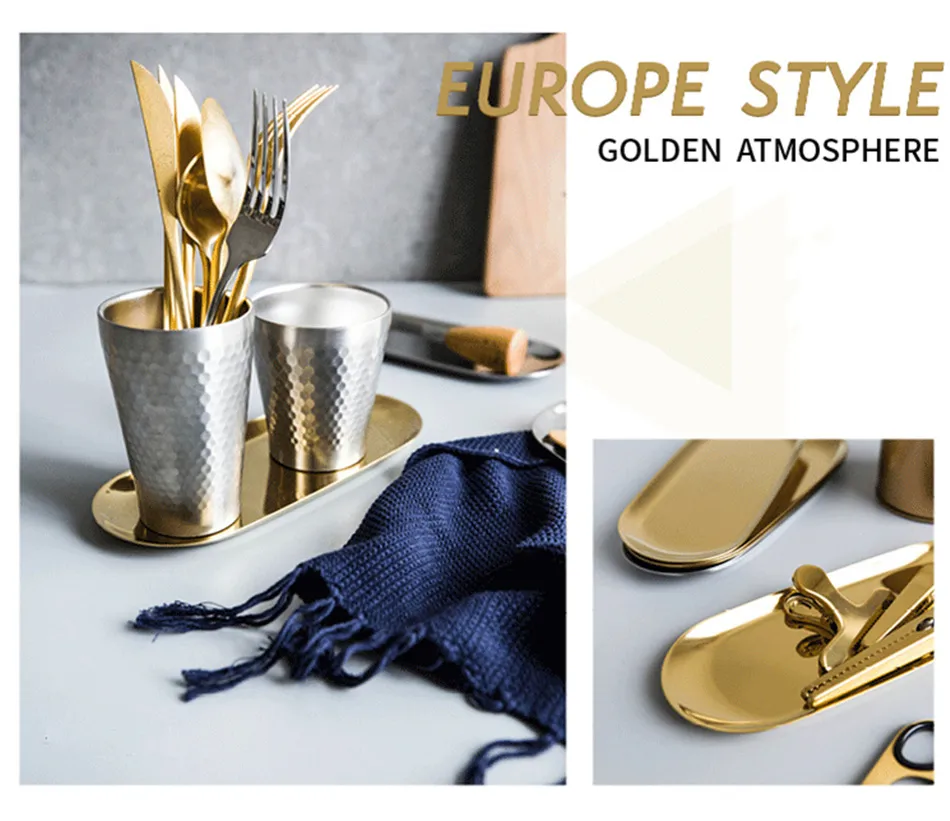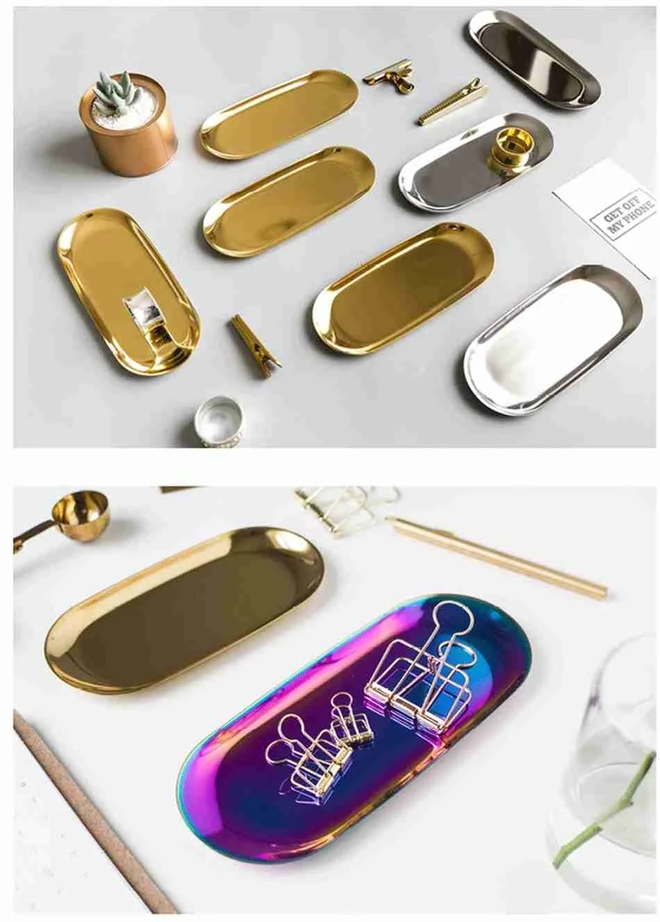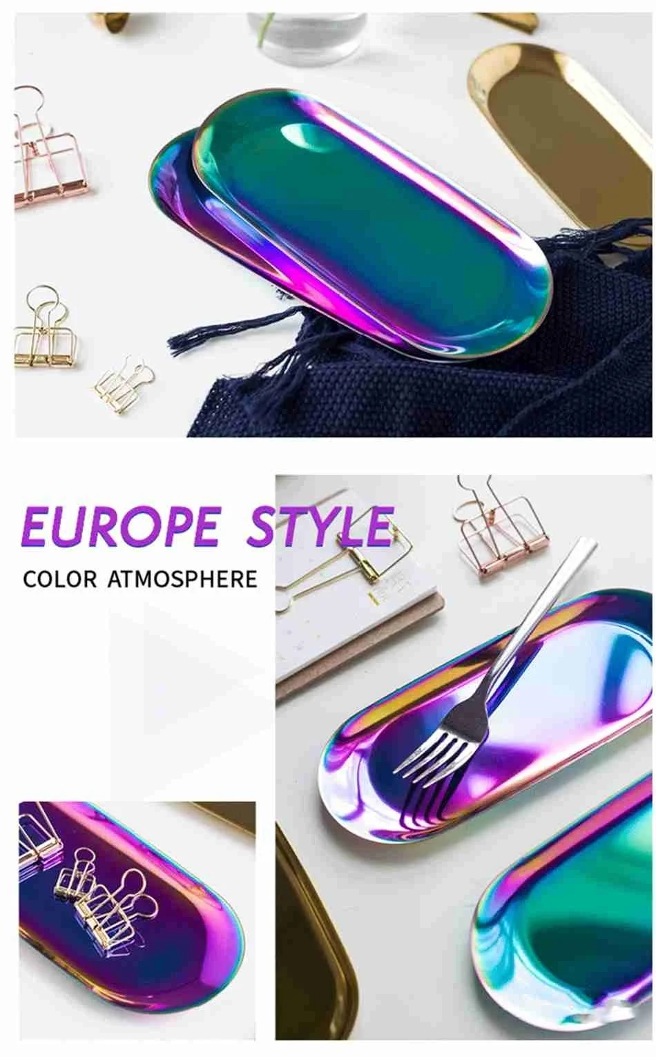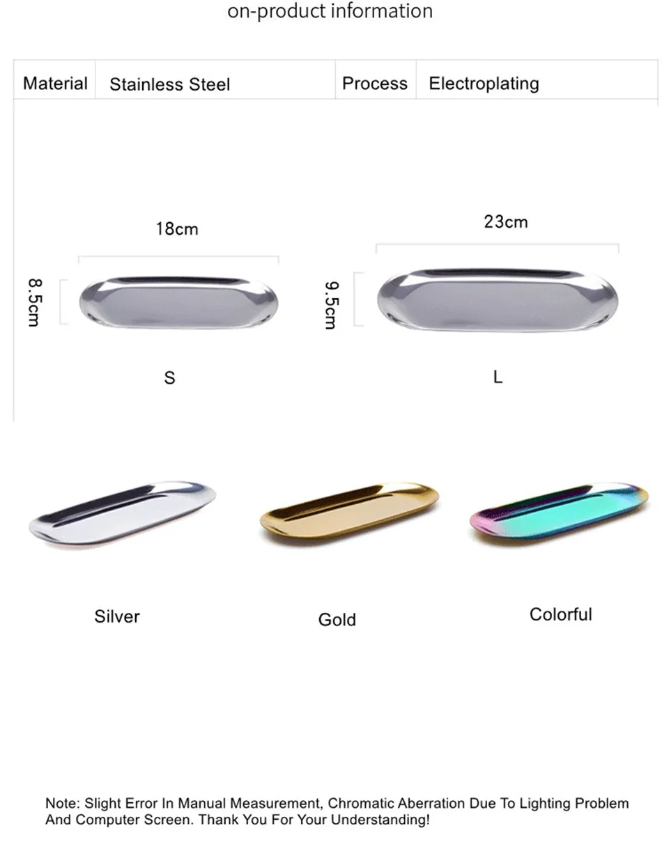 Stainless Steel Gold Storage Tray Fruit Sancks Jewelry Display Plate Kitchen Organizer Tools Metal Seal Clip
