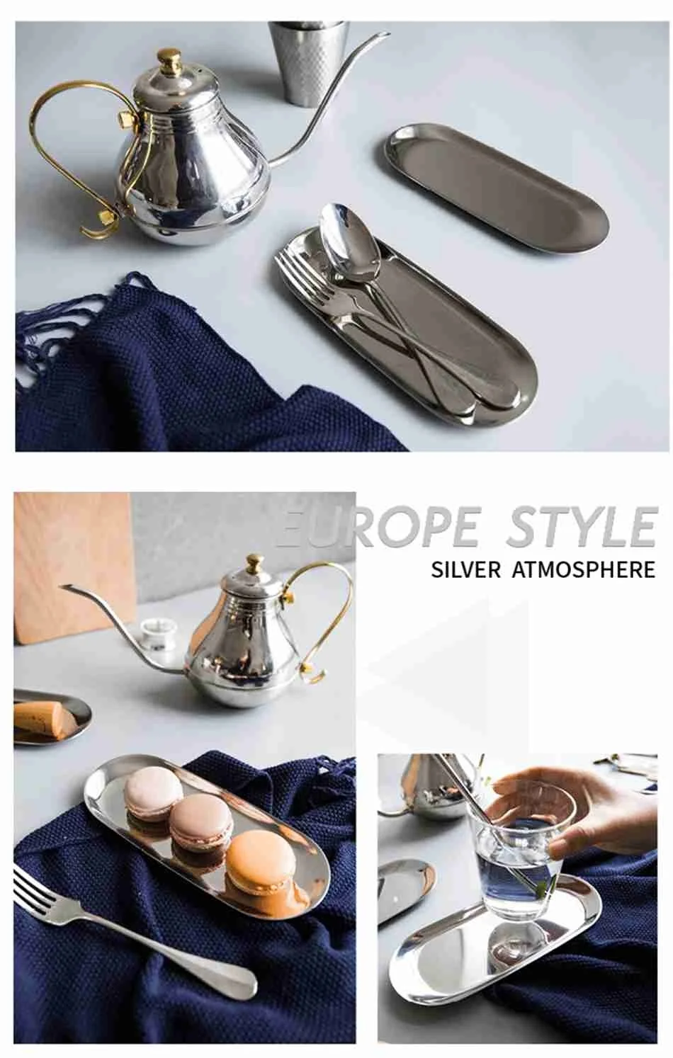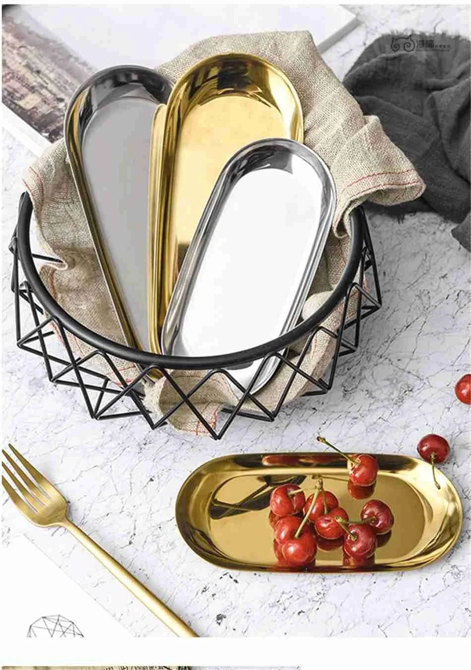 Fruit Sancks Jewelry Display Plate Stainless Steel Gold Storage Tray Kitchen Organizer Tools Metal Seal Clip Bean Spoon Clip