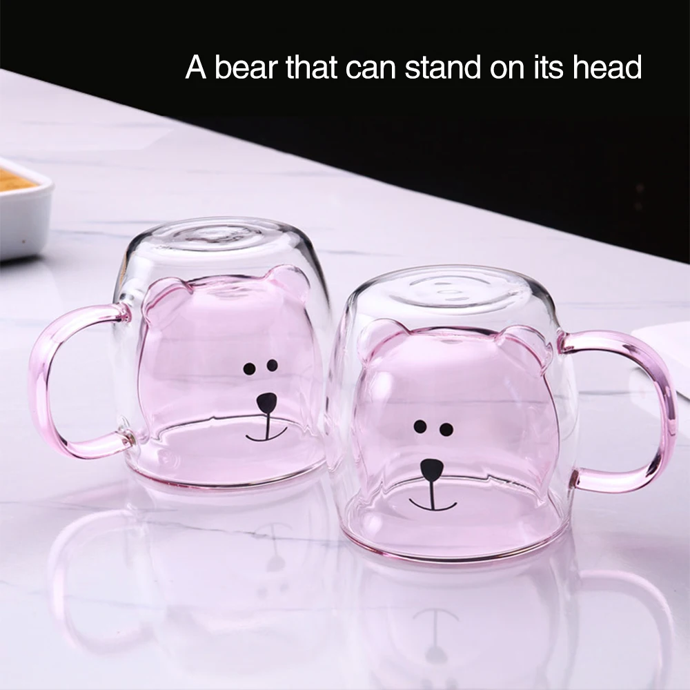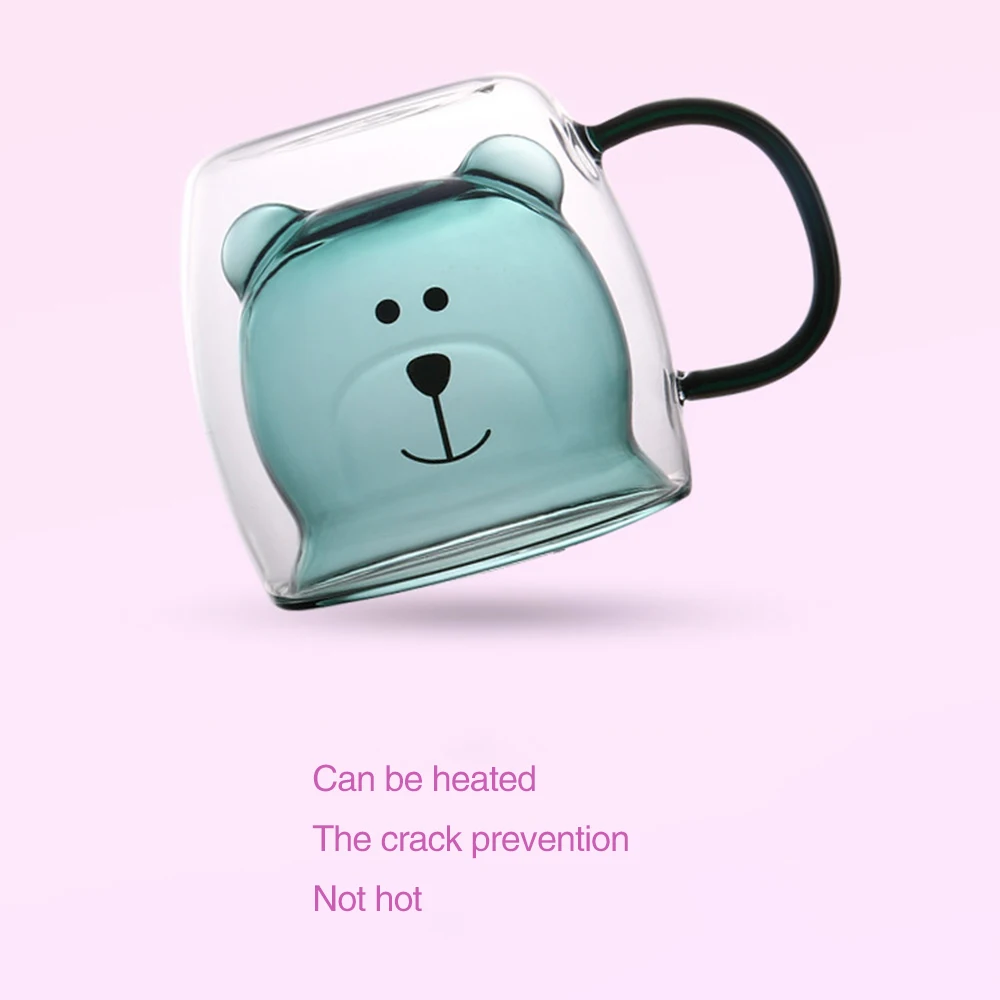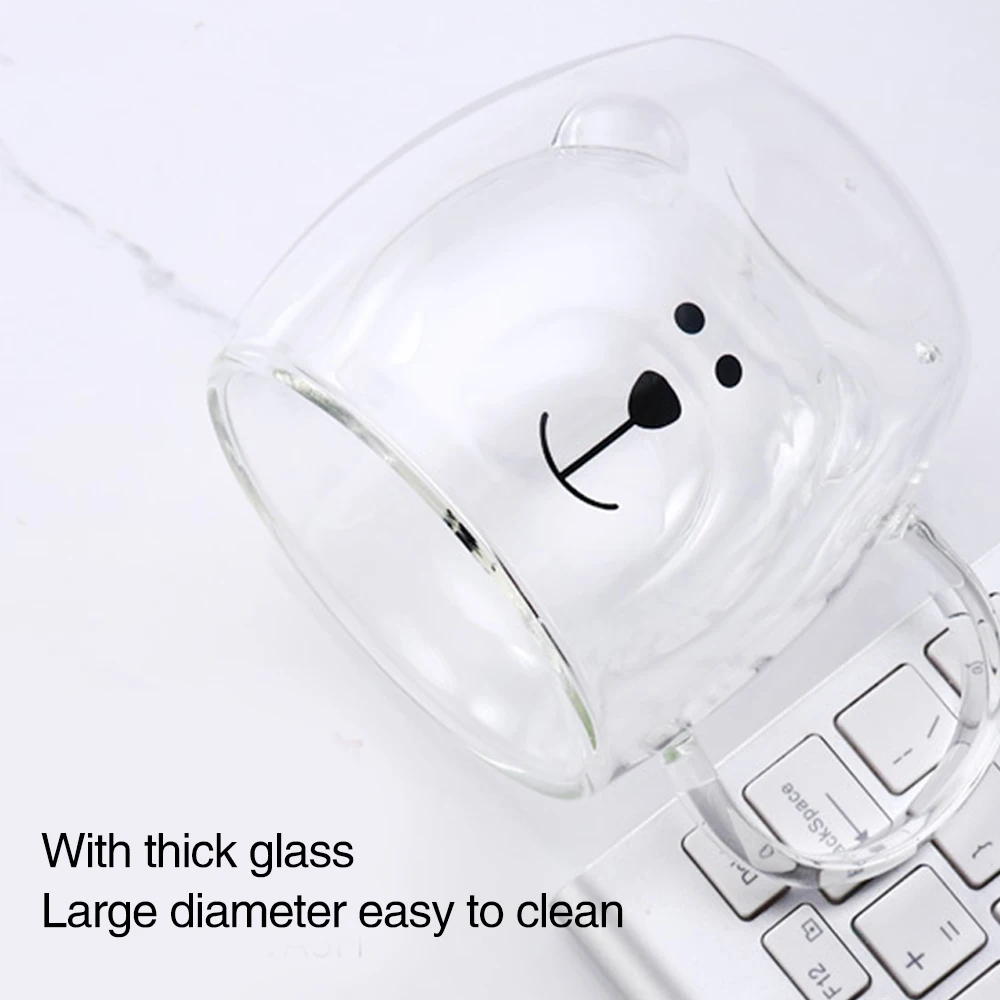 Heat-resistant glass mug with cute bear pattern