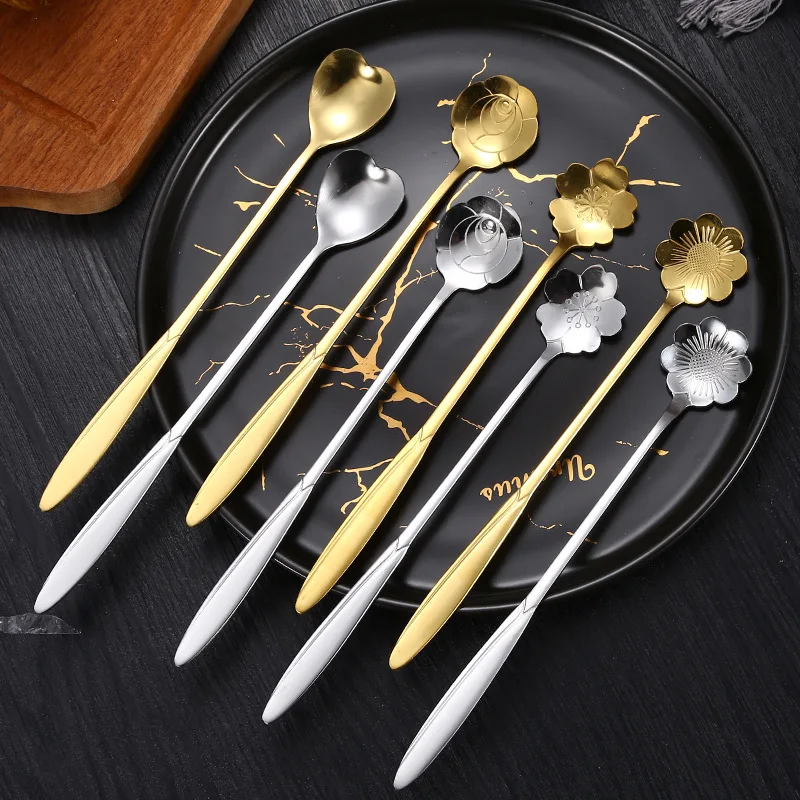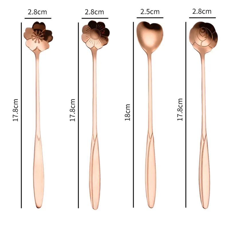 3. Each spoon has its own exquisite and elegant pattern (rose, cosmos, cherry blossom, heart shape). The exquisite appearance matches your tableware and cups perfectly.