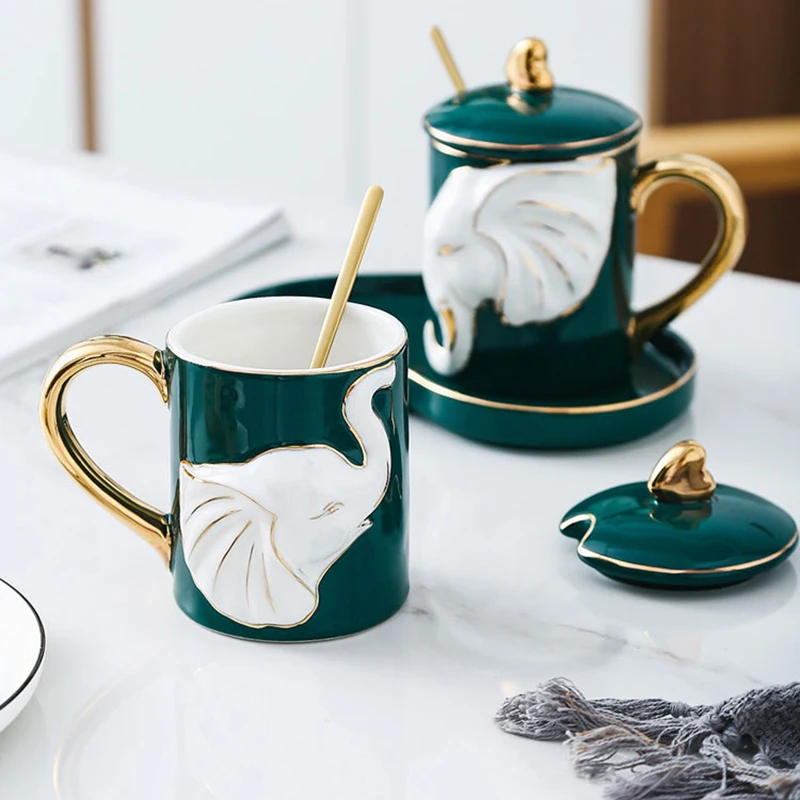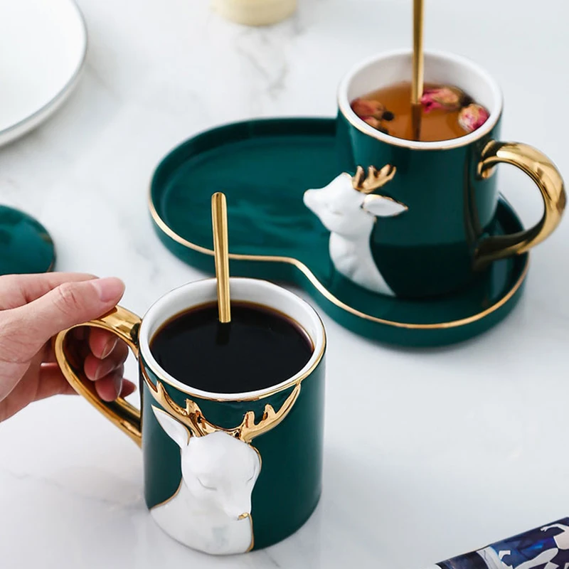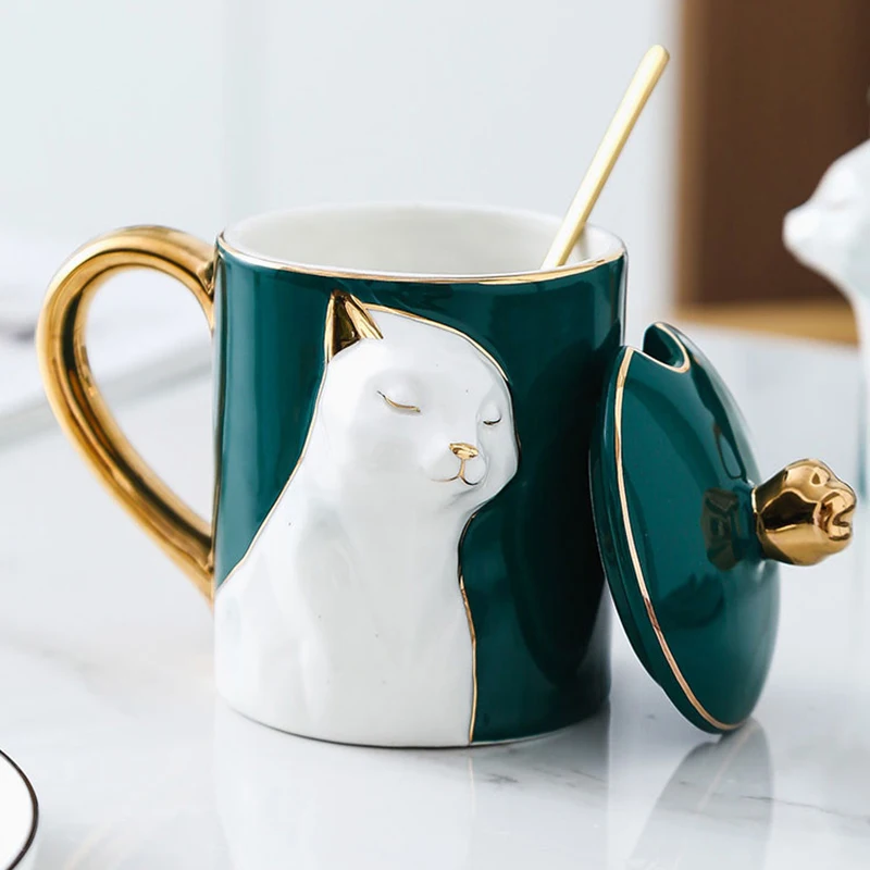 2Pcs/Set Nordic Mug Couple Pair Cup Creative Spoon with Lid Ceramic Love Cup Tray Lid Valentine Day Wedding Gift Box Milk Mugs
