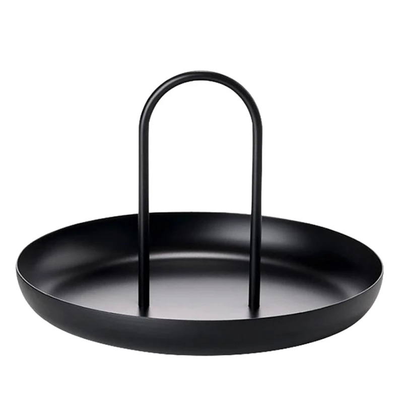 Nordic Plastic Round Jewelry Trays Living Room Desktop Storage Tray Kitchen Table Meal Snack Tray Plate with Handle Home Decor