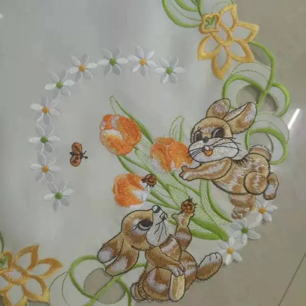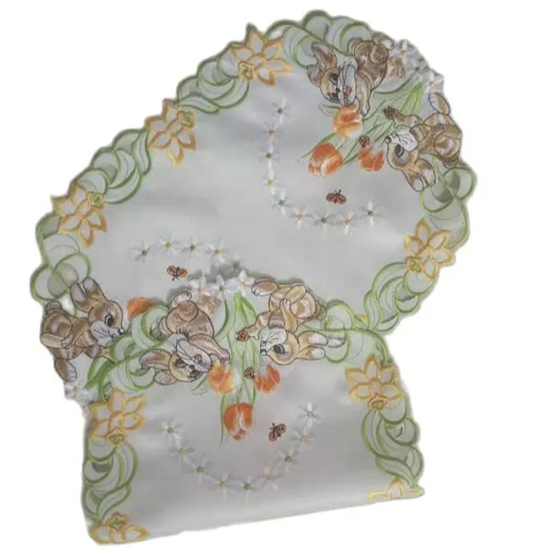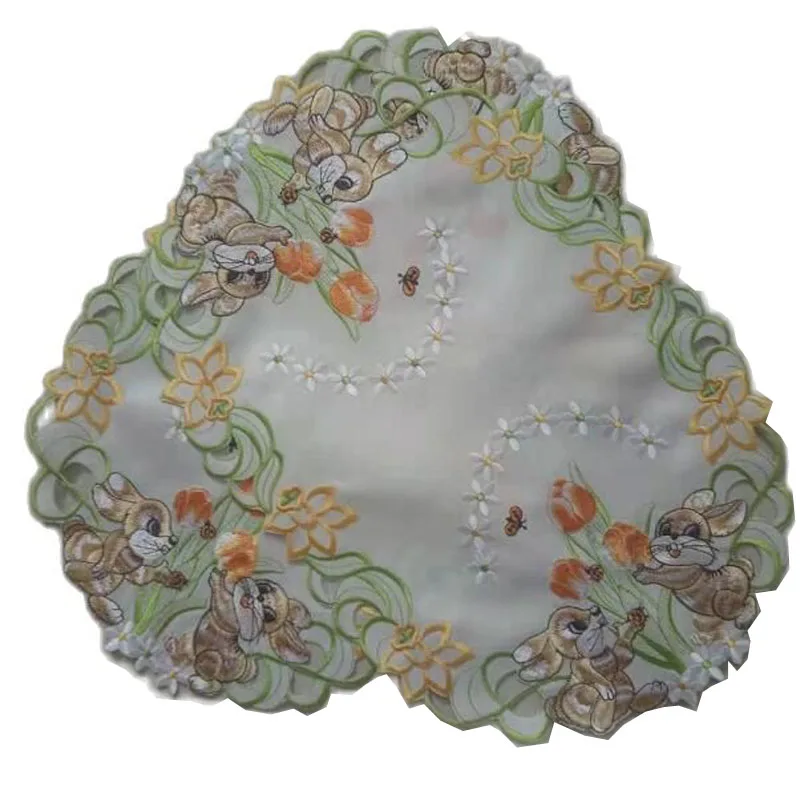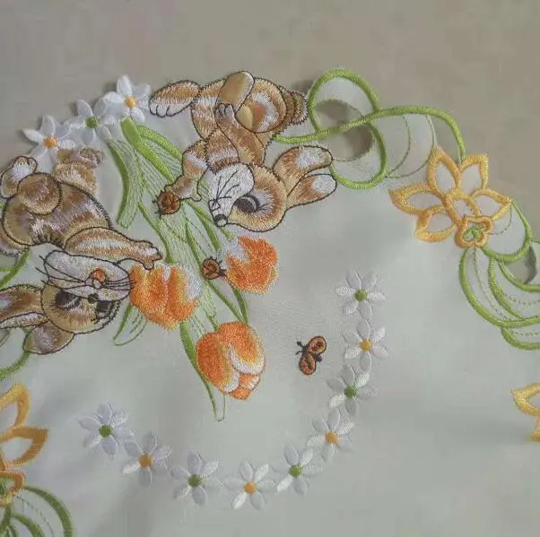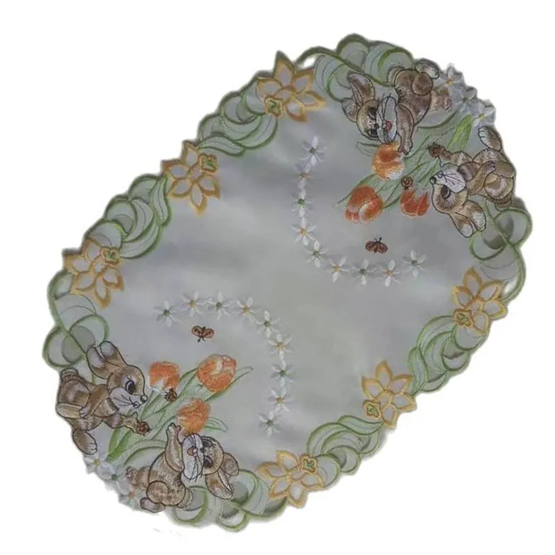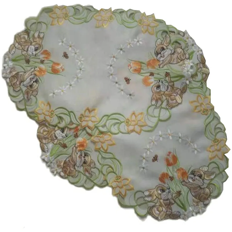 HOT oval Easter bunny embroidery table place mat pad cloth cup dish tea coaster placemat mug doily kitchen Easter Accessories