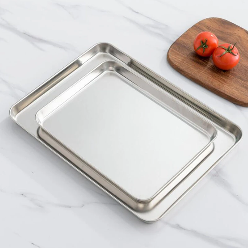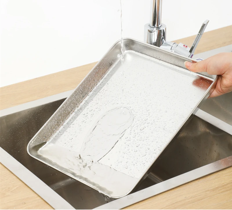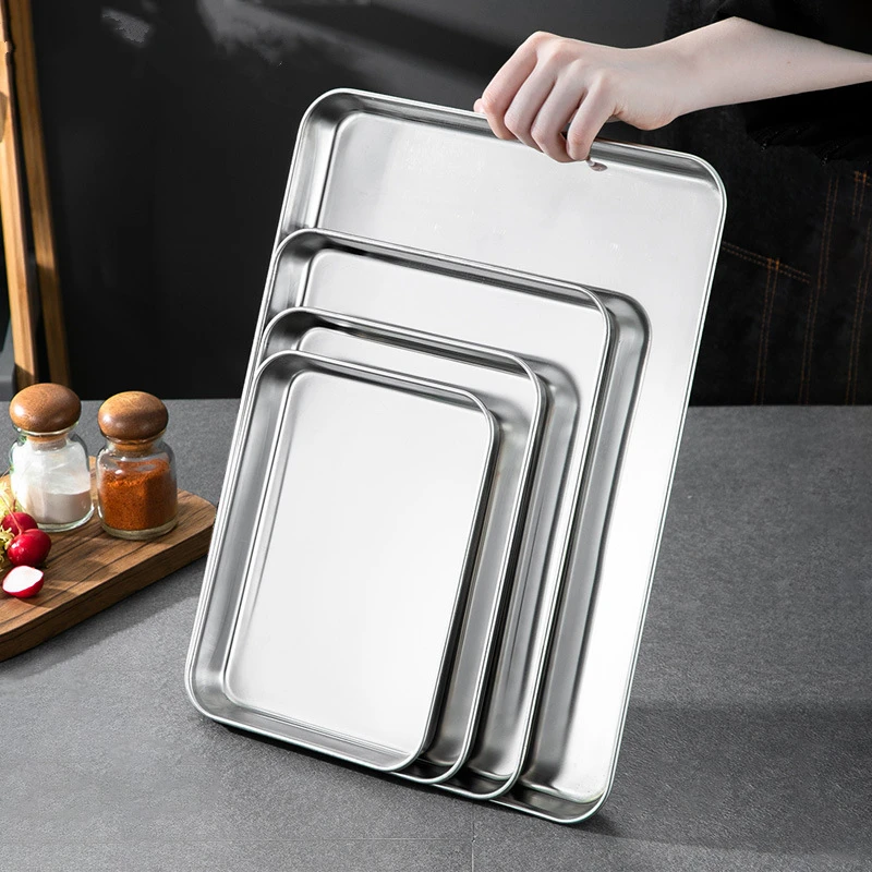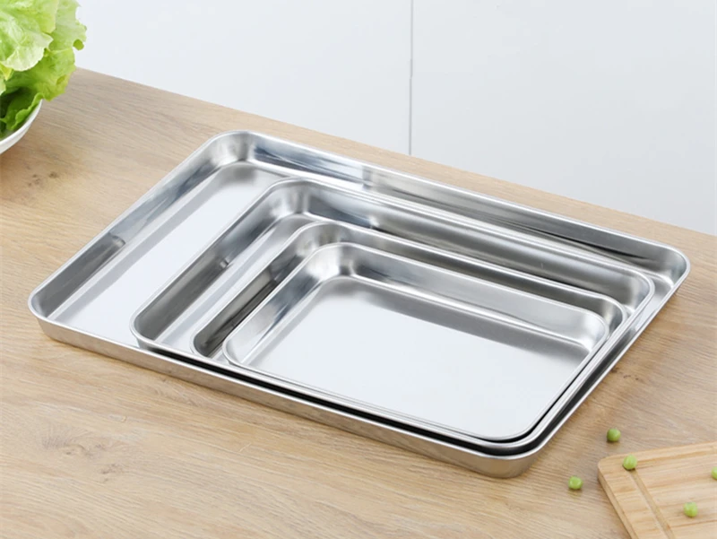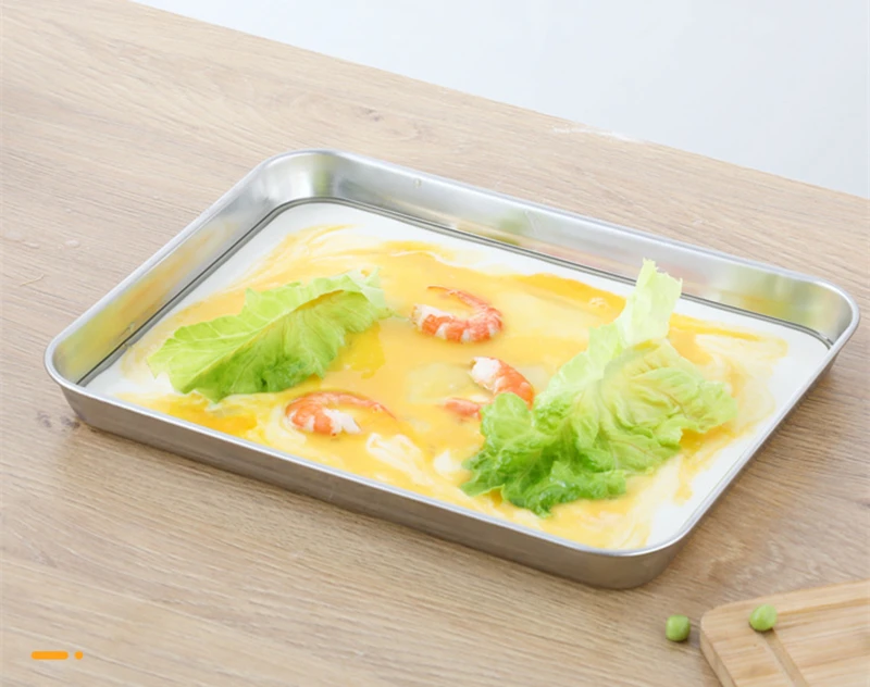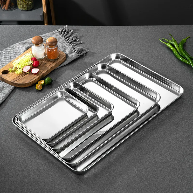 Rectangle Stainless Steel Food Storage Trays Steamed Sausage Noodles Fruit Dish Restaurant Hotel Kitchen Pastry Baking Plates