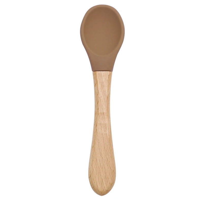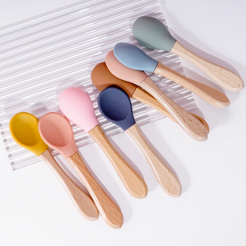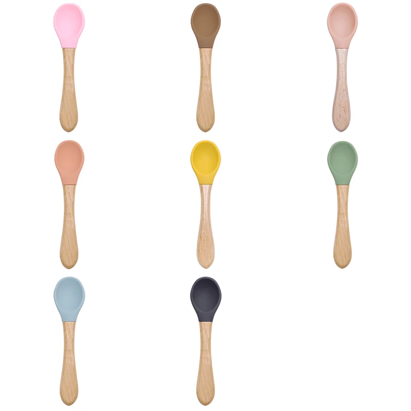 Feeding Wooden Handle Silicone Spoon For Baby Utensils Eat Soild Food Kids Training Manipulative Ability Children’s Tableware