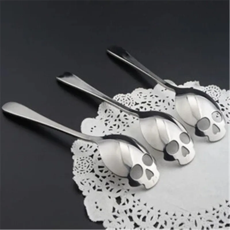 Skull-shaped spoon for use as a dessert or coffee spoon