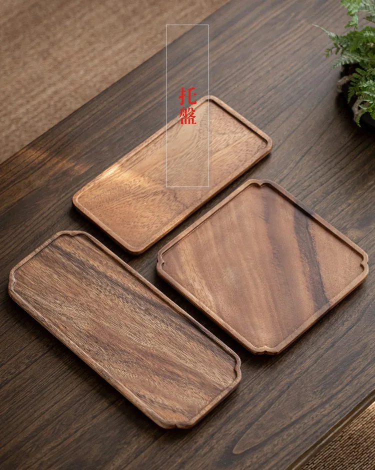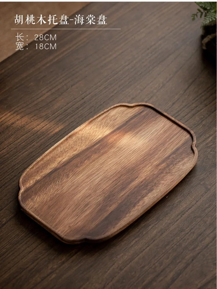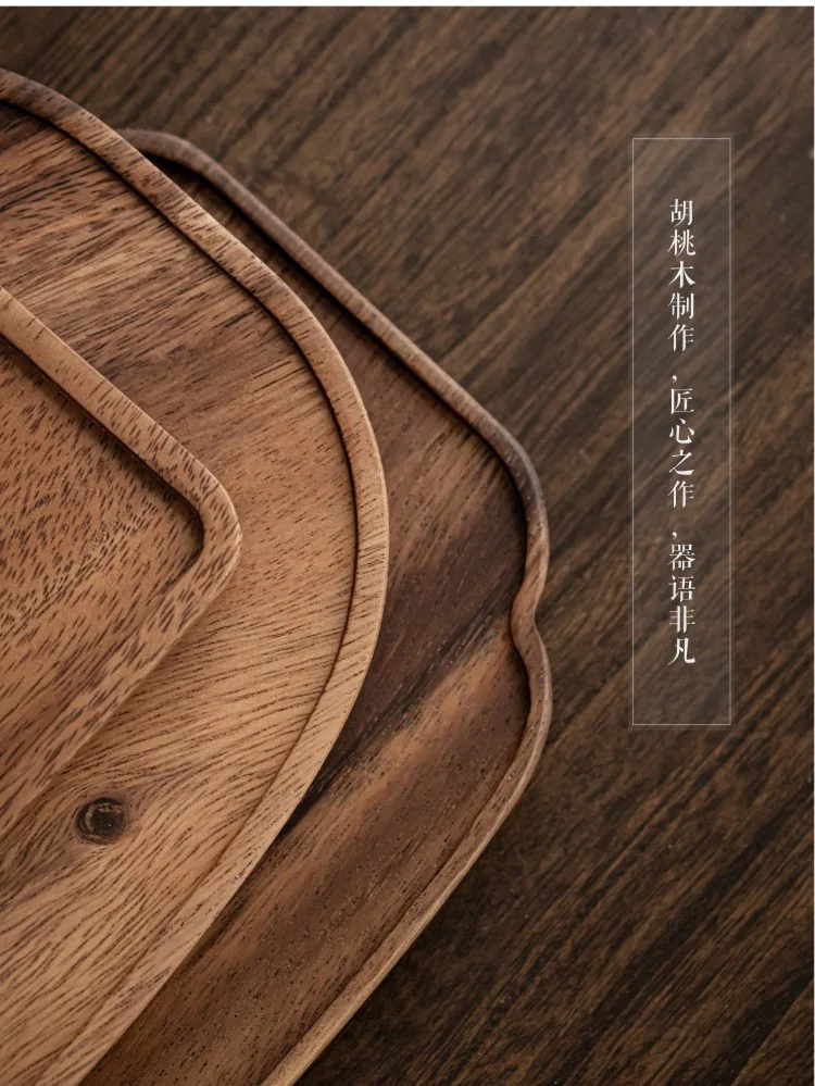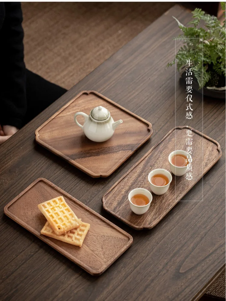 Wooden Natural texture Rectangle Tea Tray Serving Table Plate Snacks Food Storage Dish for Hotel Home Serving Tray Square Walnut